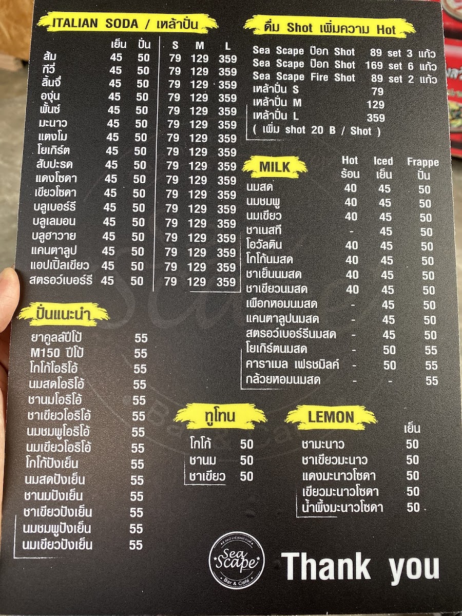 Sea Scape Bar & Café Menu